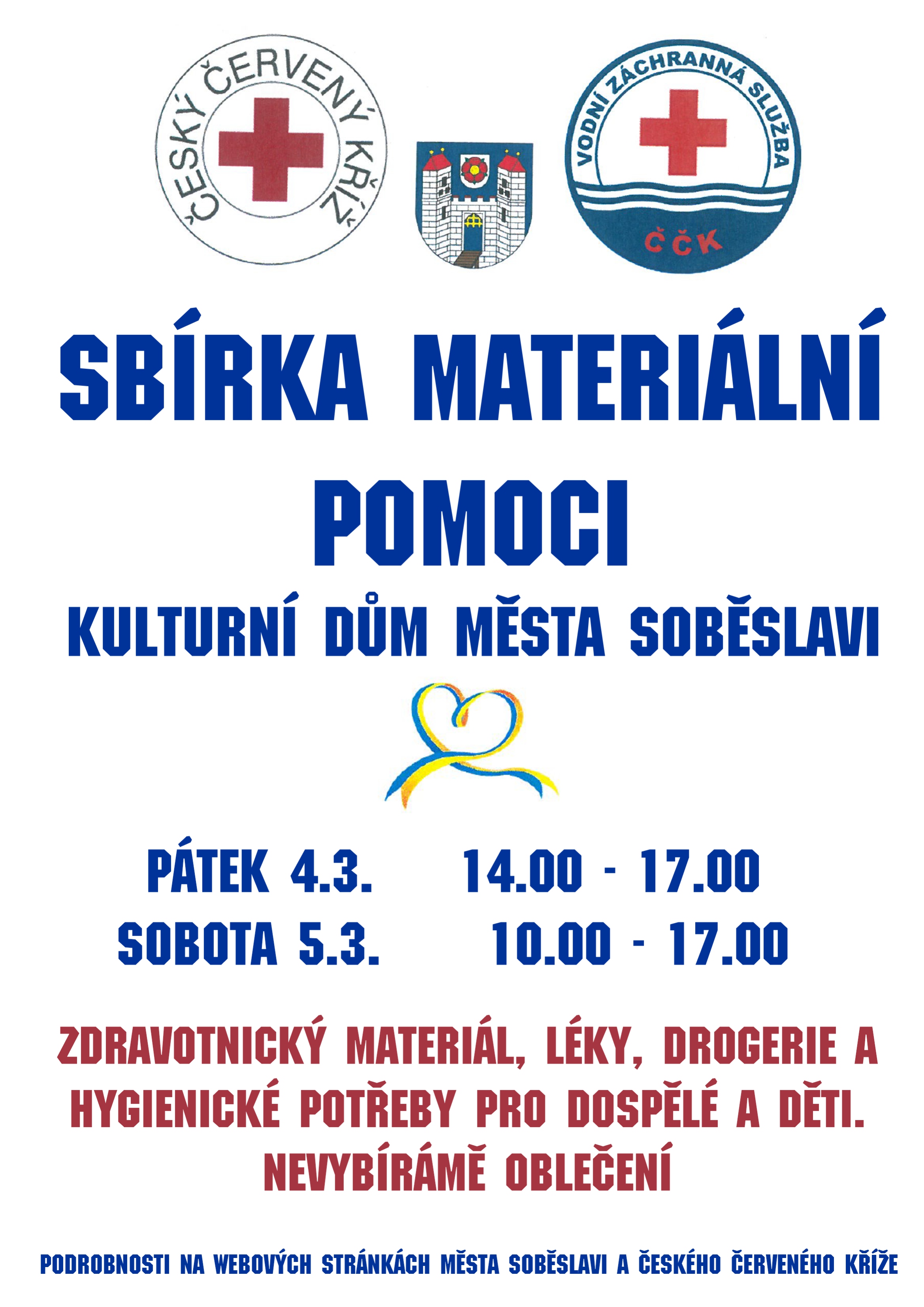 Město Soběslav ve spolupráci s Českým červeným křížem organizuje materiální sbírku na pomoc Ukrajině.